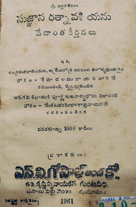 Sujnana Ratnavaliyanu Vedanta Keerthanalu